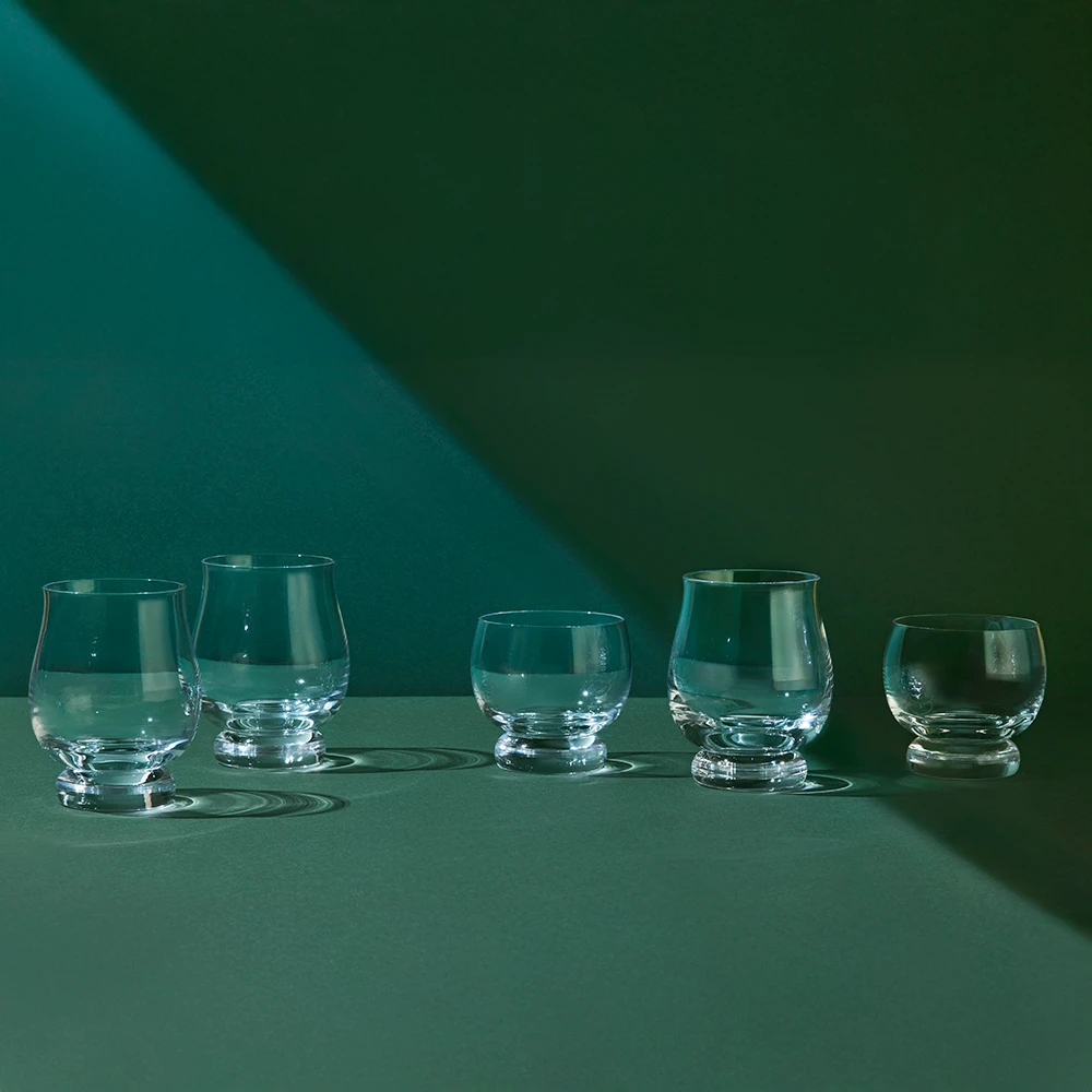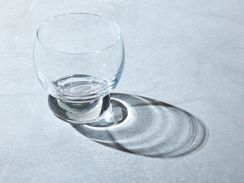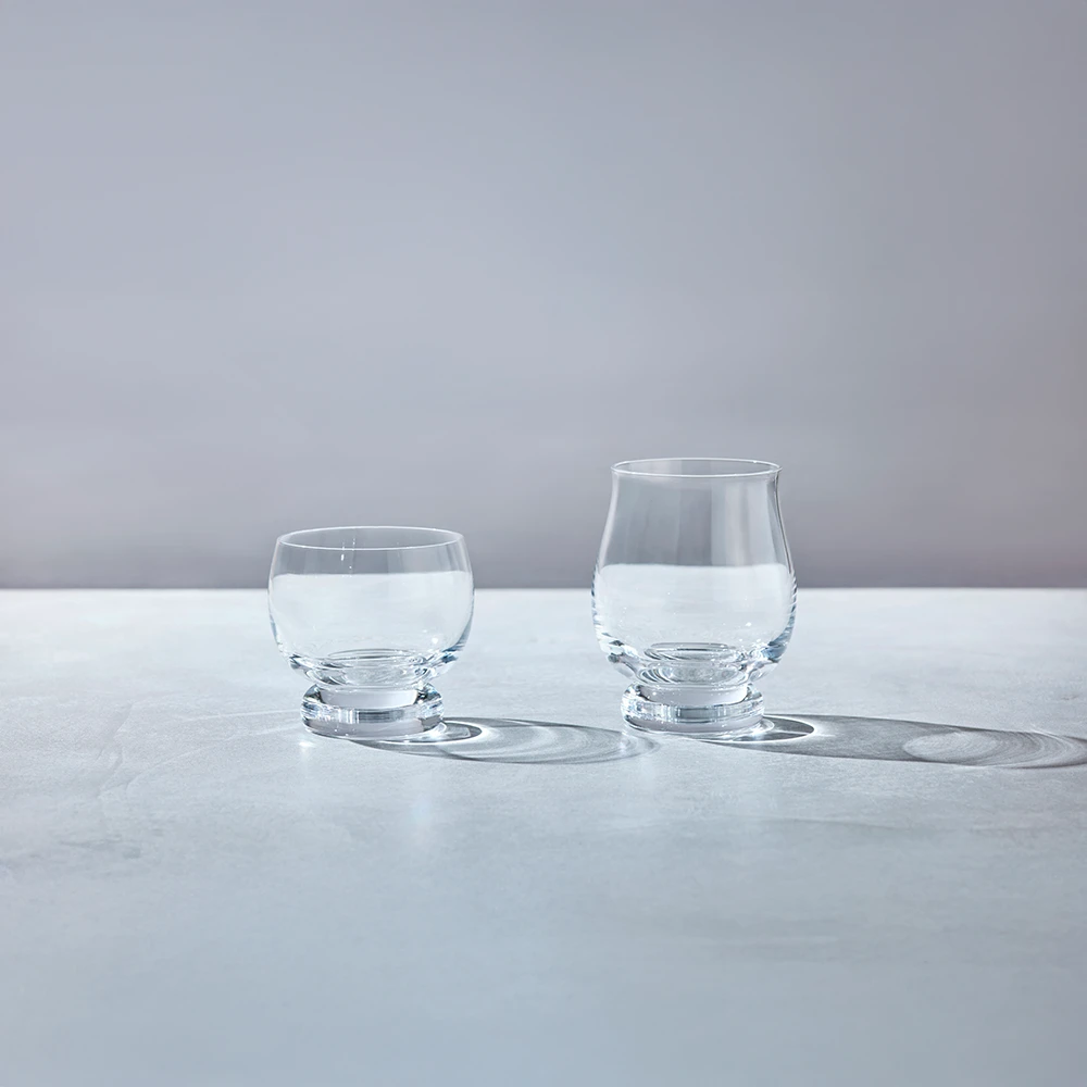ころんとした丸みを帯びたフォルムに手が自然と沿い、重心も低めに設計されているので手の中にすっと収まる安定感があるグラスです。