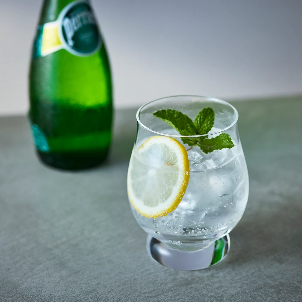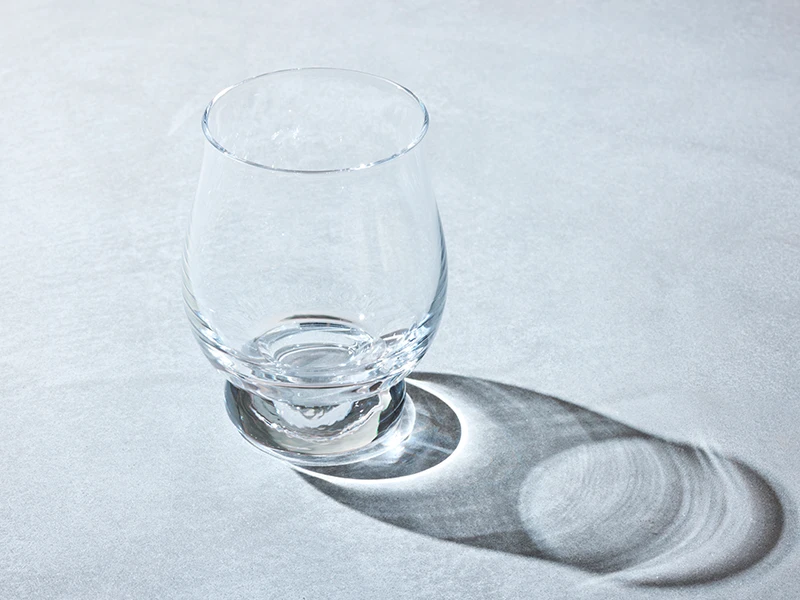 内側に香りを閉じ込めるだけでなく、グラスをしっかり傾けて嗜む設計になっているため、自然と鼻先がグラスに覆われ、芳香がやさしく包み込むように届きます。