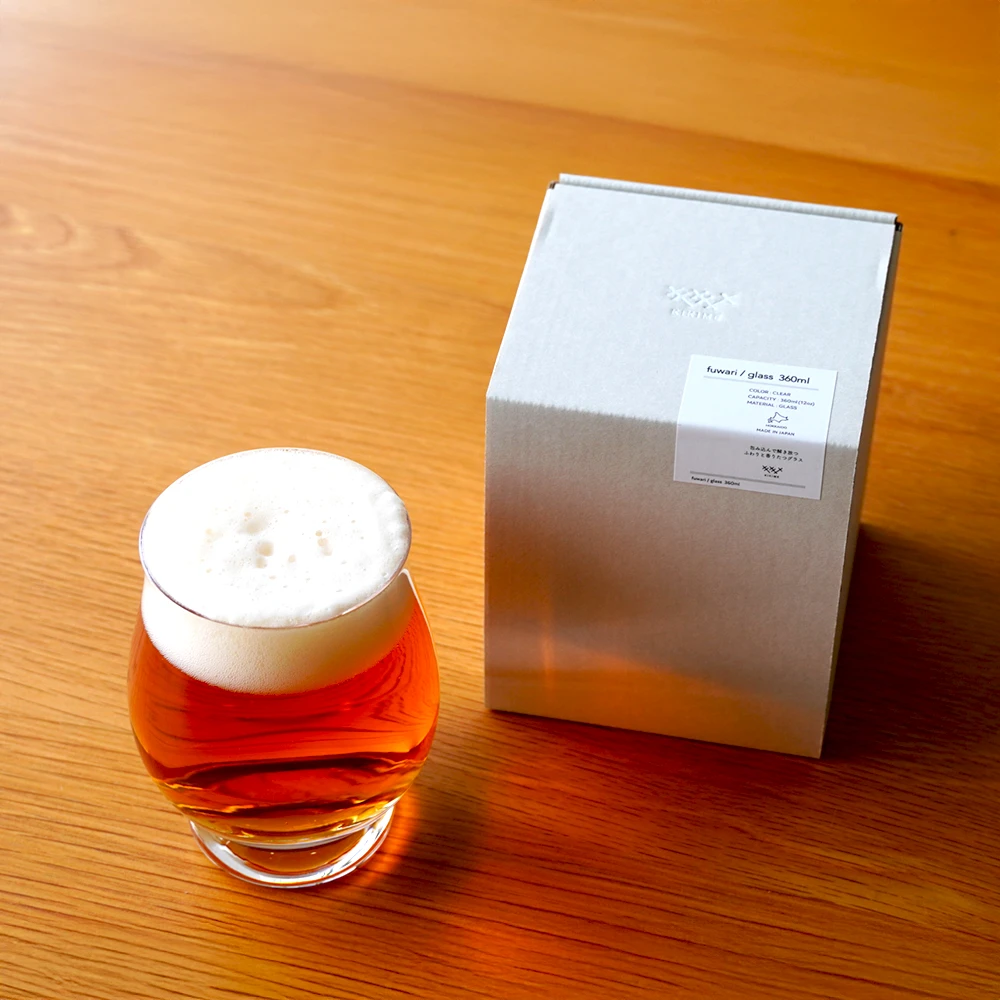 「fuwari グラス」360mlは、丸みを帯びたフォルムと口元がわずかに広がった設計が特徴です。