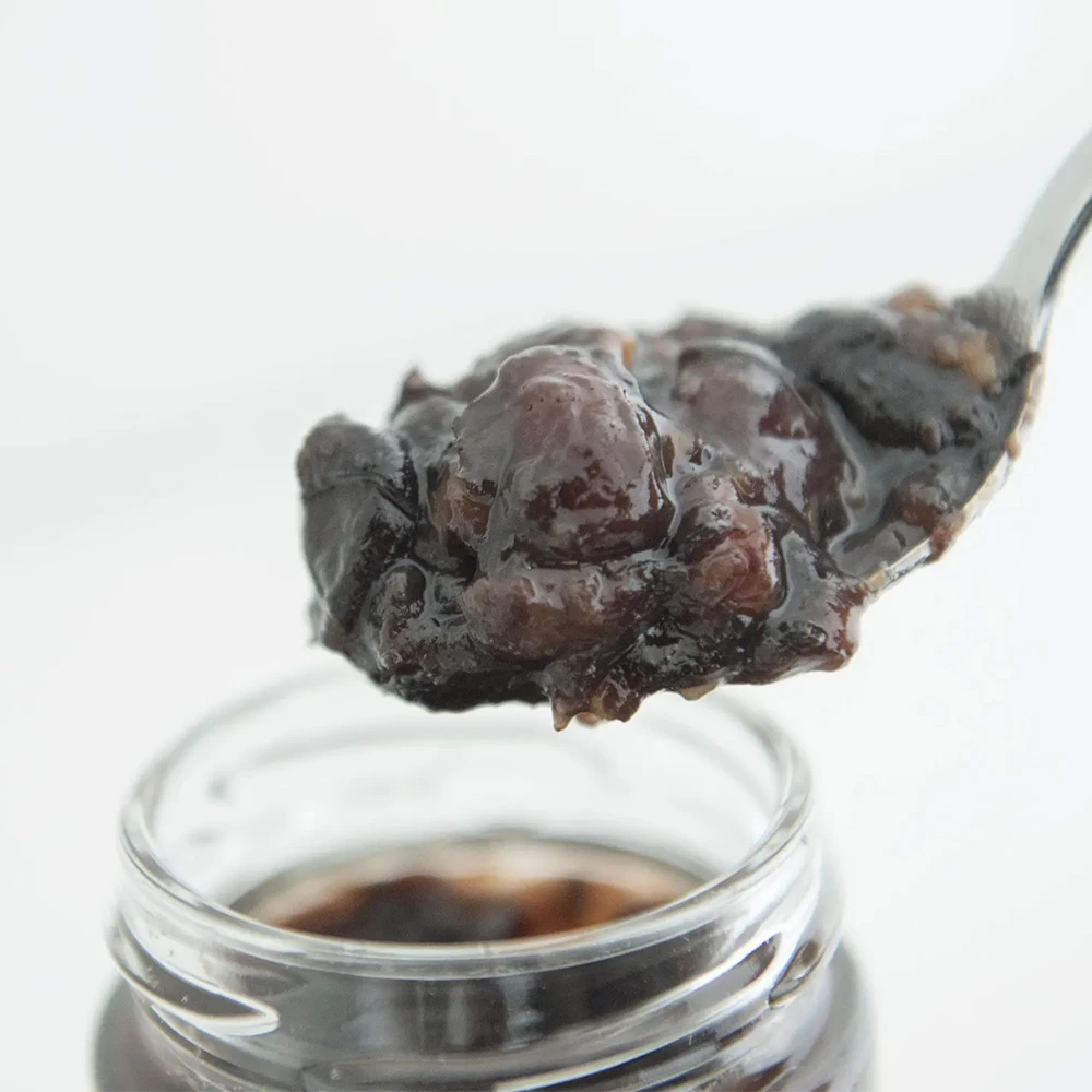 このジャムの魅力は、なんといっても丹波黒大豆の「食感」