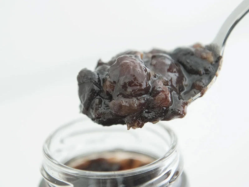 あえて粒感を残したペースト状に仕上げていて、黒大豆特有のふっくらとした食感と甘みを存分に楽しめます。