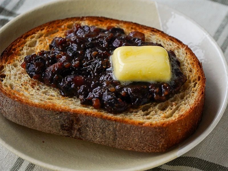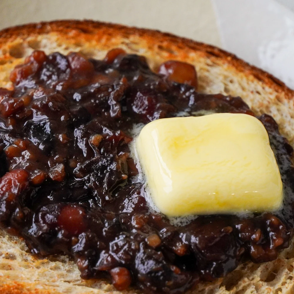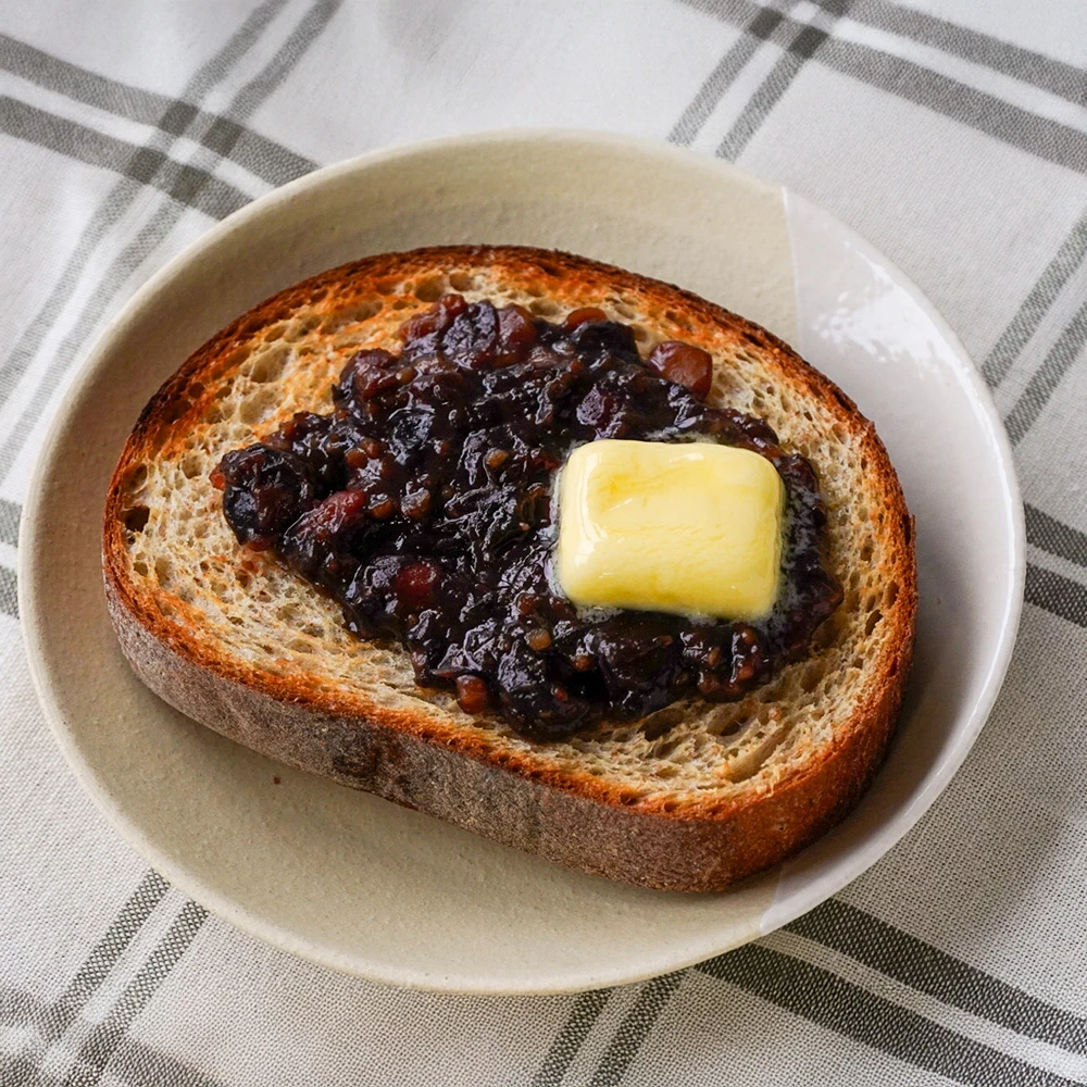 バターのほどよい塩味が黒大豆の豊かな風味を引き立て、小豆のあんバターとはひと味違う、上品で奥行きのあるおいしさを楽しめます。