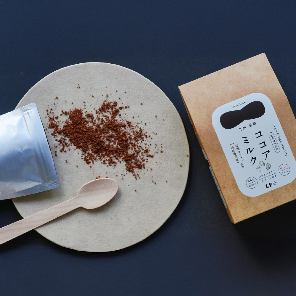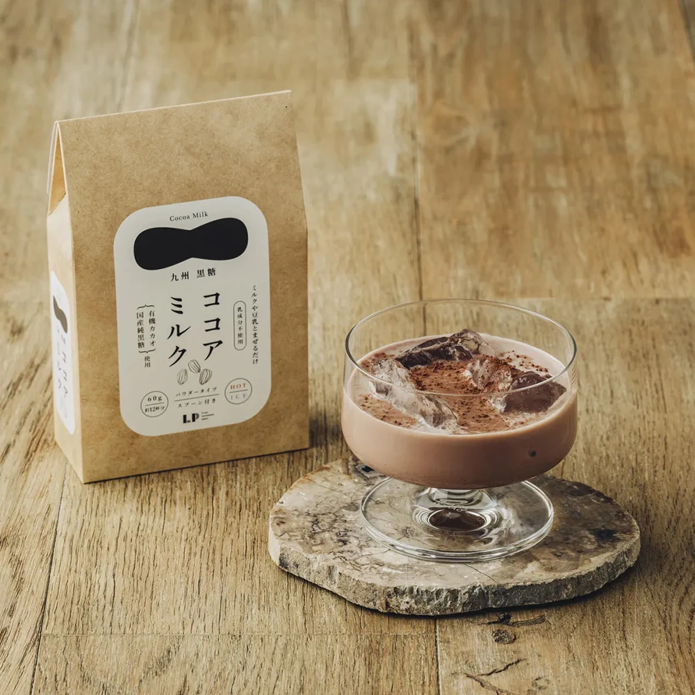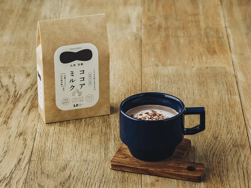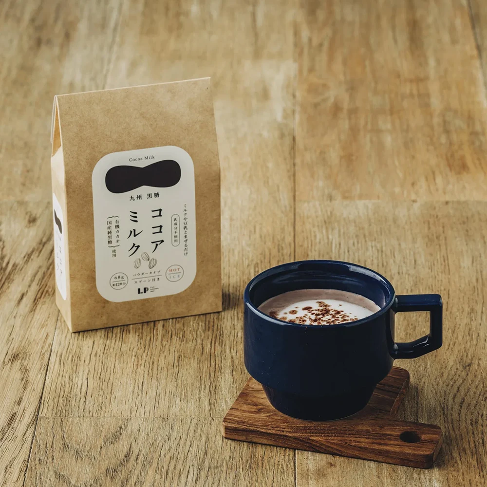 有機カカオの香ばしさとビターな余韻、そこに九州産の純黒糖の優しい甘さが加わった優しい黒糖ココアミルク。