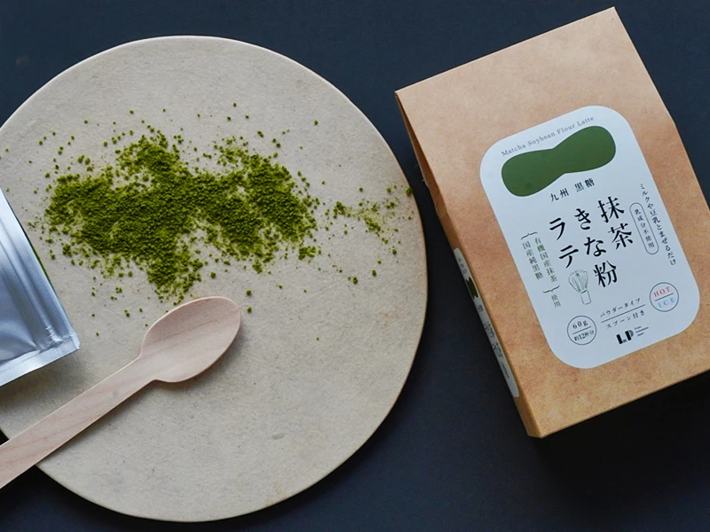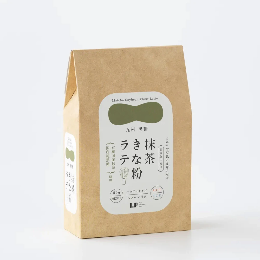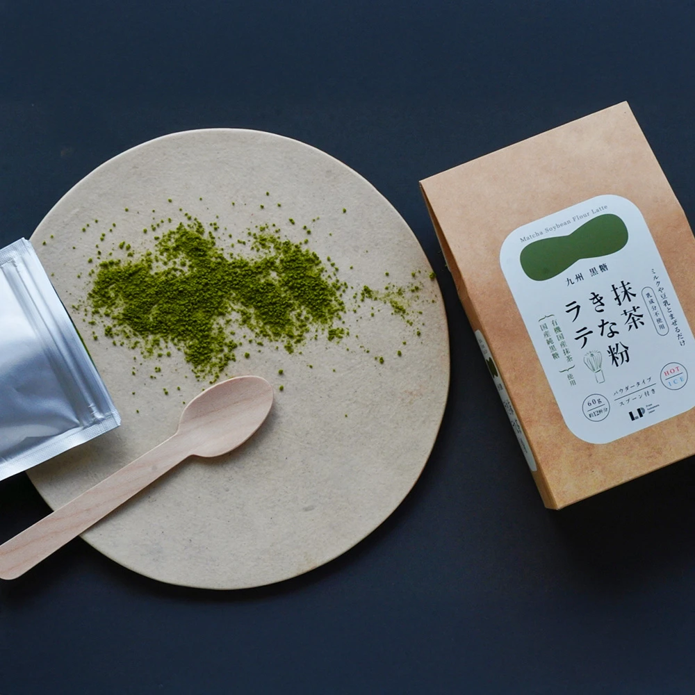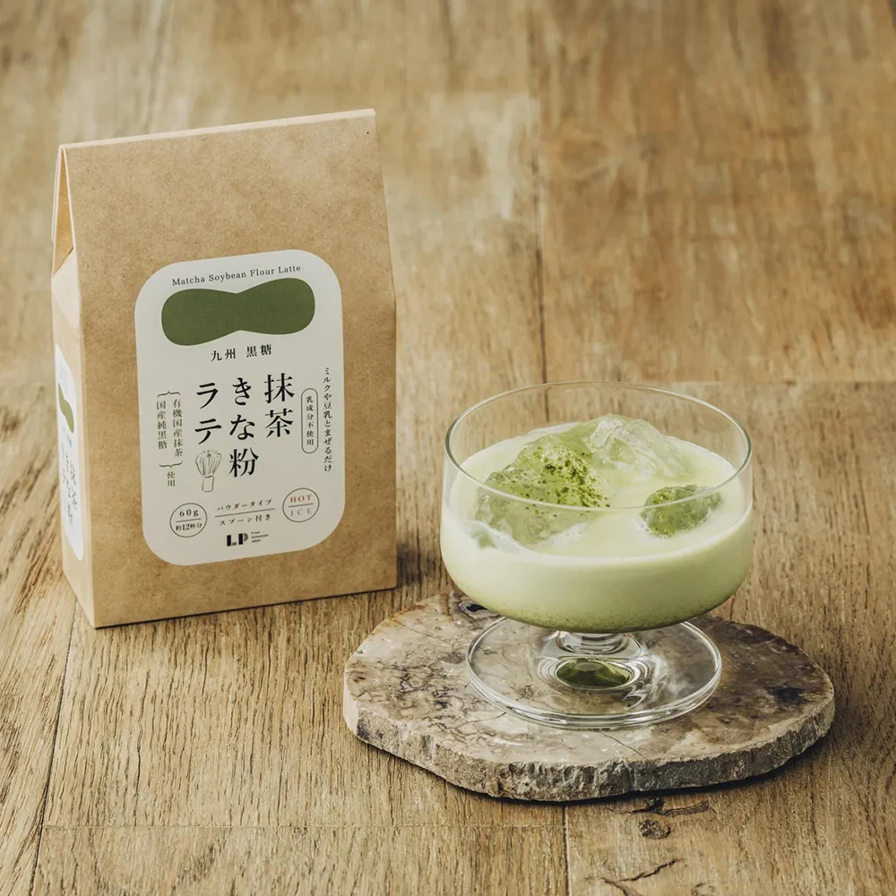 九州産の純黒糖を使った、黒糖抹茶きな粉ラテの素。
