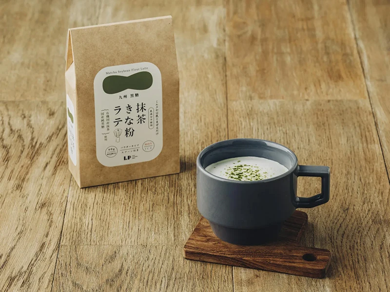 有機国産抹茶の豊かな香りに、きな粉の香ばしさがふわりと寄り添い、そこに九州産純黒糖の優しい甘さがほどよく重なる、和の味わいのラテ。
