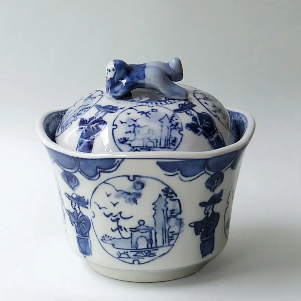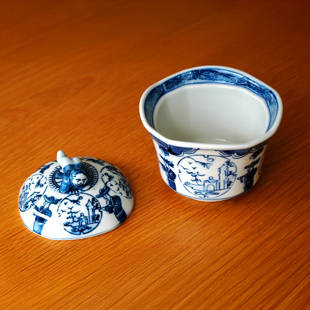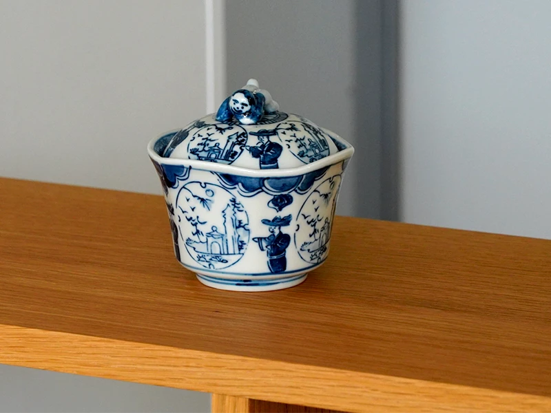 蓋の上でのんびりくつろぐ「一閑人」がなんとも愛らしい、小さな蓋付きの器。