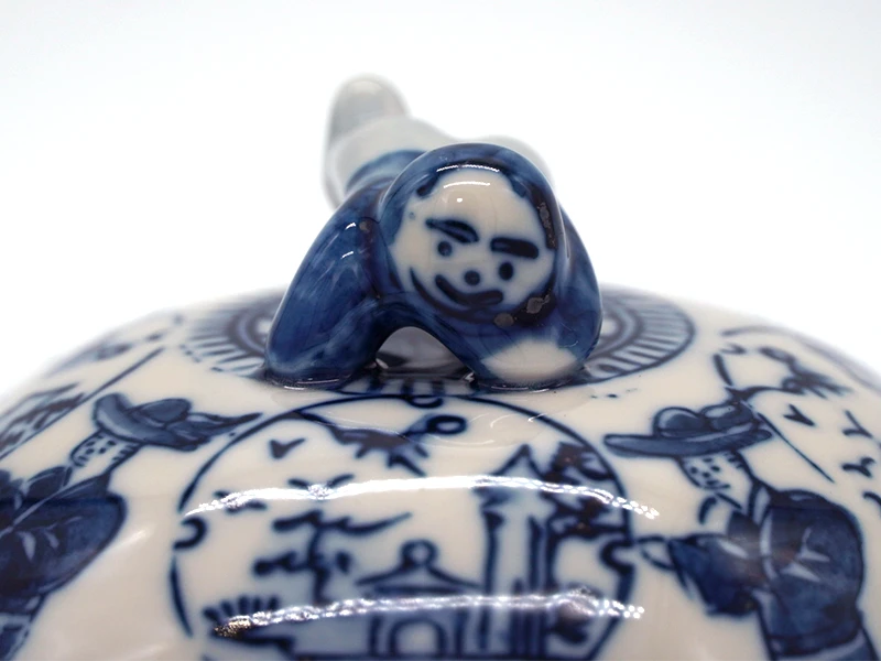 ふたの上にちょこんと寝そべる小さな人形、名前は「一閑人(いっかんじん)」。