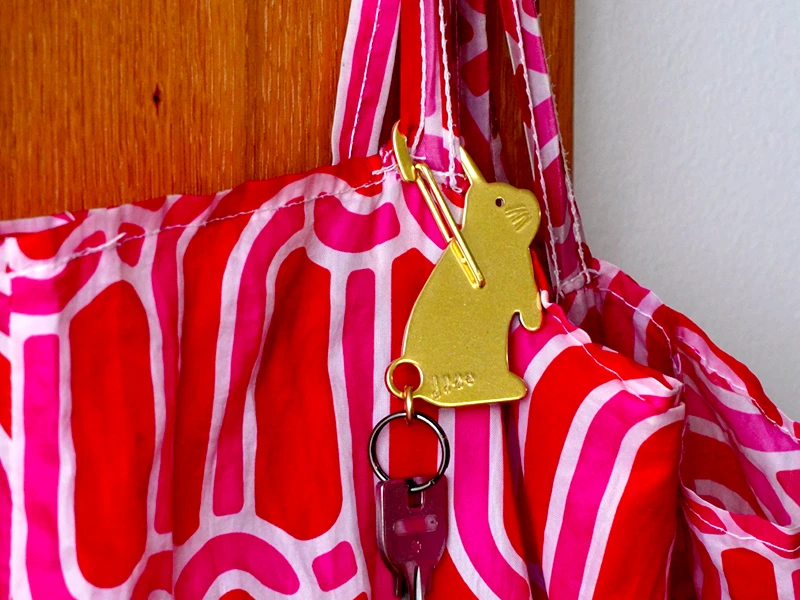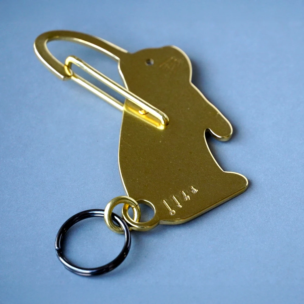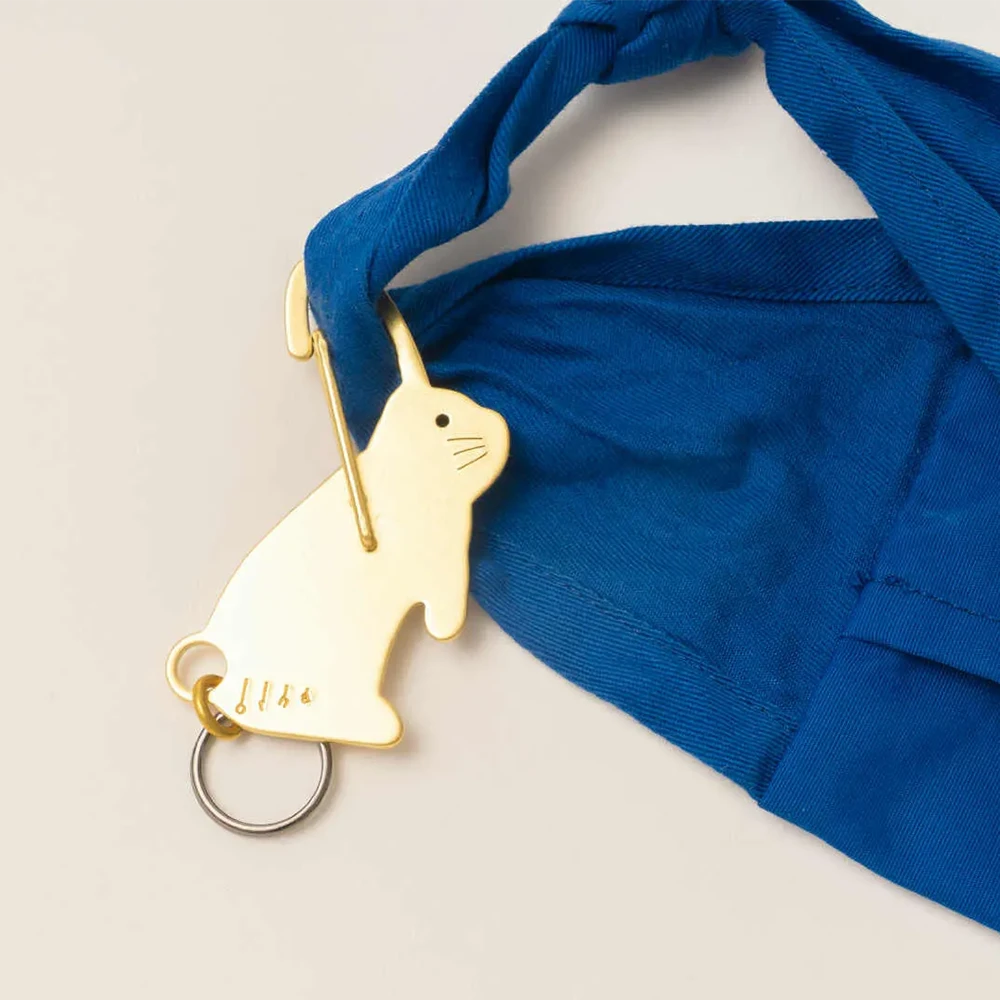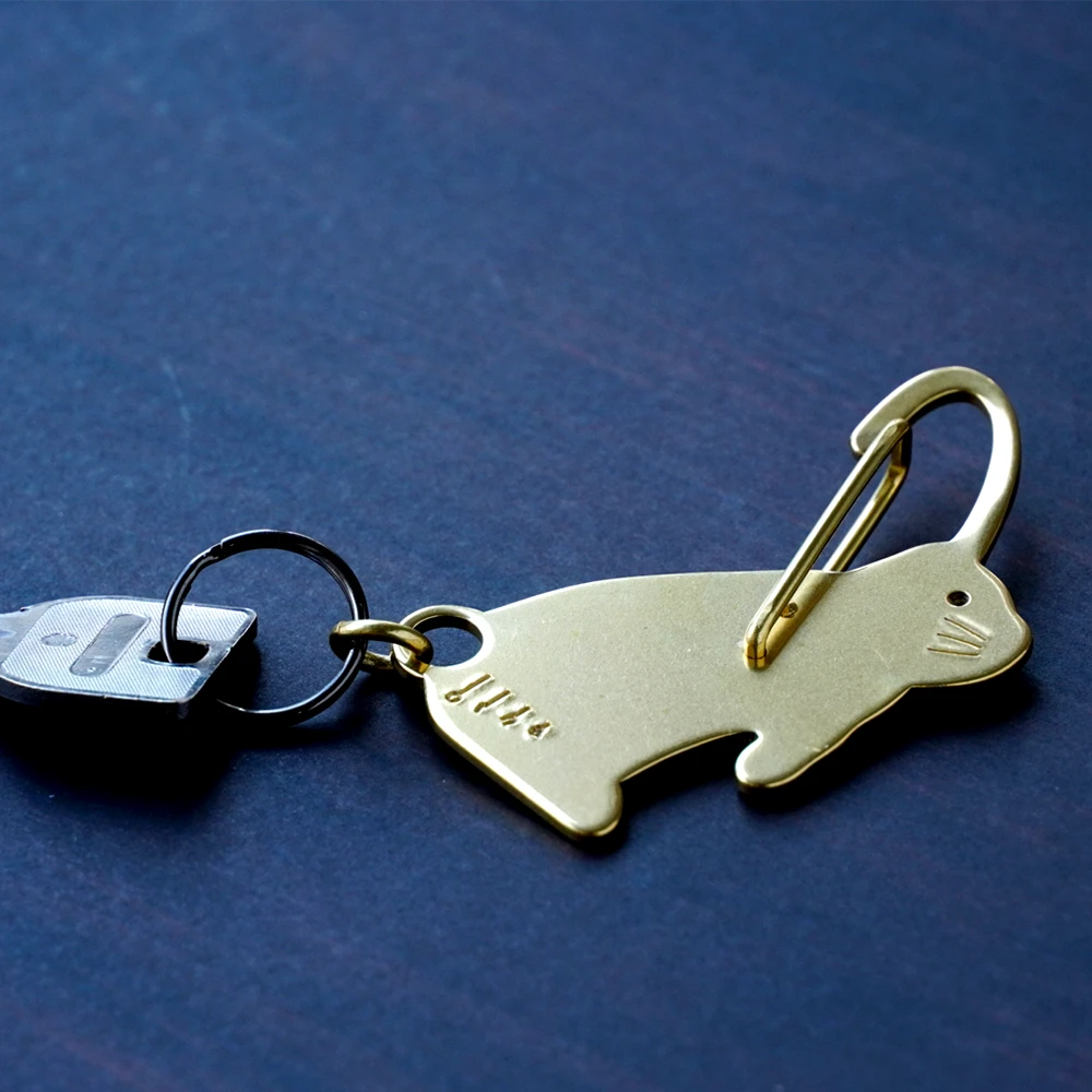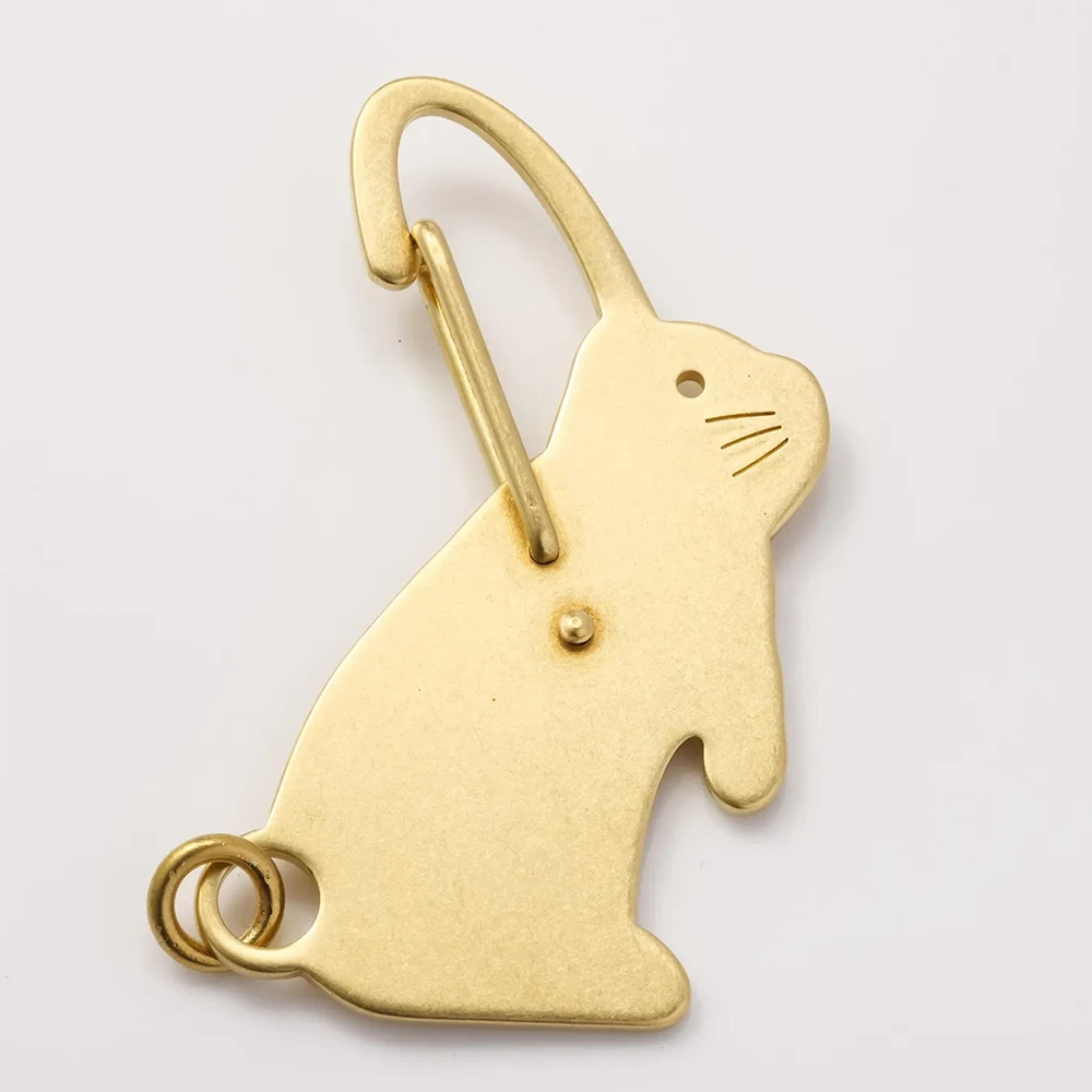 前足をそっと上げた愛らしいウサギをモチーフにした、真鍮製のカラビナ。