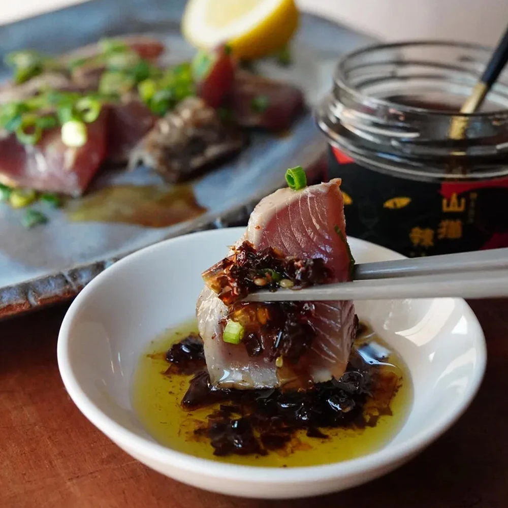 鰹節の旨みと、花椒の爽やかな香りがふわりと広がる、食べる辣油(ラー油)。