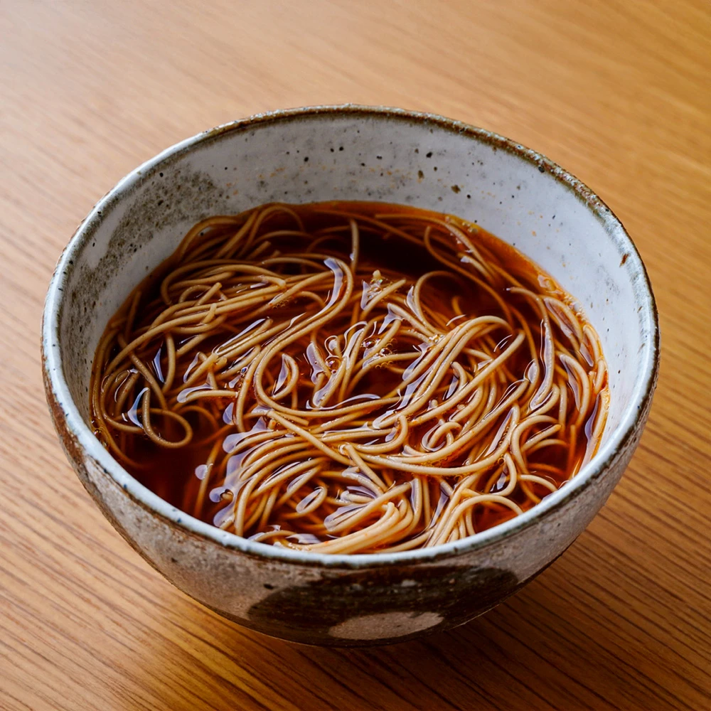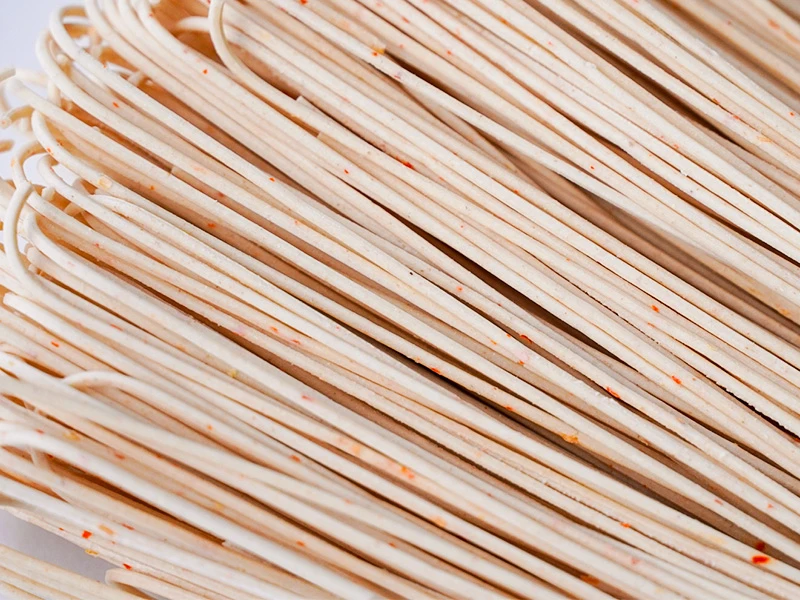 山形県産の自然栽培小麦に、100年守り継がれてきた佐賀県産在来種の唐辛子を練り込んだ、繊細な細麺のとうがらし麵。