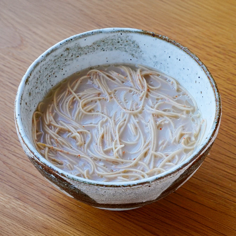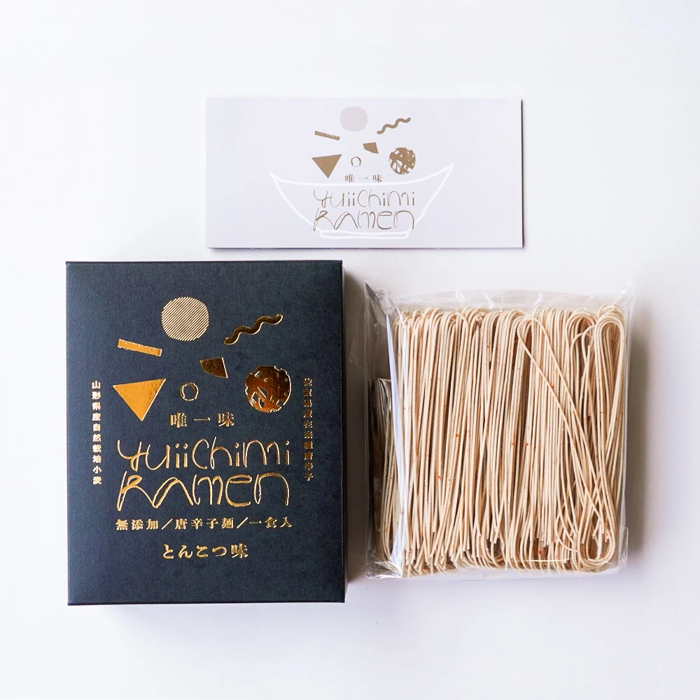 山形県産の自然栽培小麦に、100年守り継がれてきた佐賀県産在来種の唐辛子を練り込んだ、繊細な細麺のとうがらし麵。