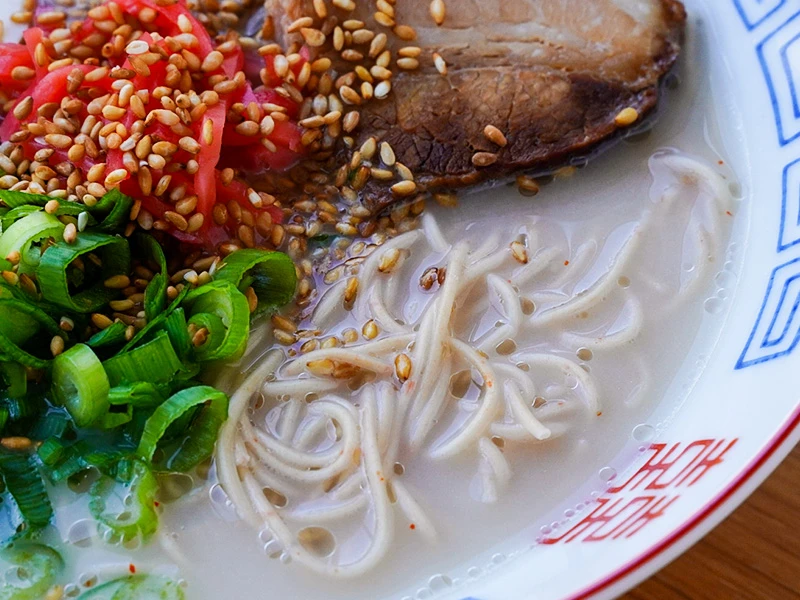 やさしくあっさりとした味わいで、とんこつ特有の香りが少し苦手な方にも食べやすいスープです。
